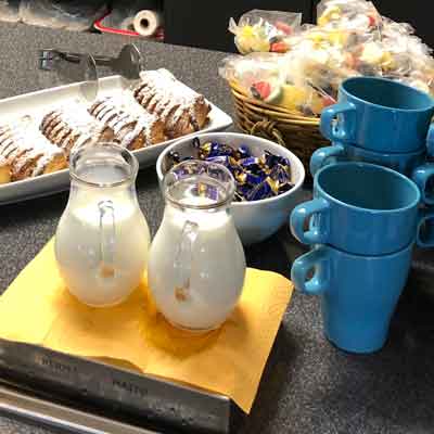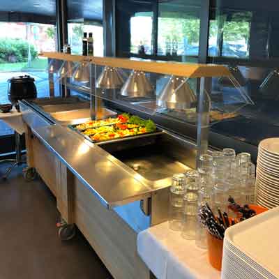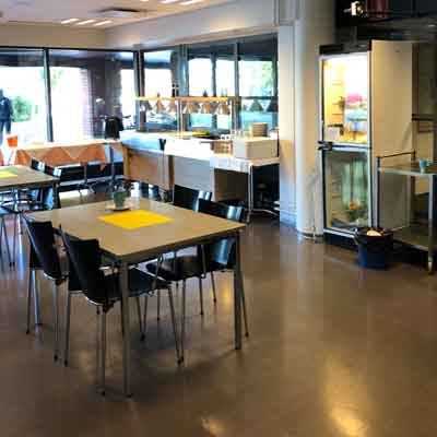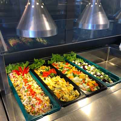 Lounas sisältää: salaatit, leivät, juomat, jälkiruoka ja kahvi